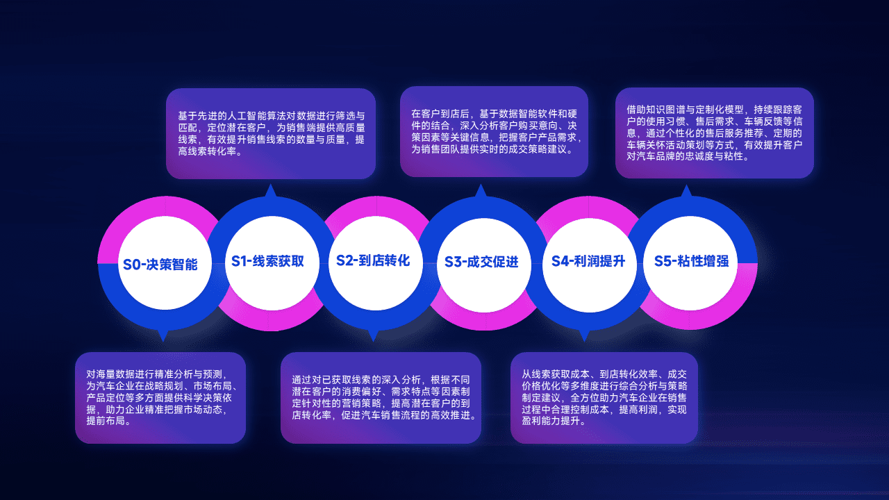 通过拓宽潜在客户来源、、优化线索分配并提高到店转化率,,以增强销售效率。。同时,,利用线索数据不断优化分析模型,,,有效提升转化率,,扩大营销影响力。。